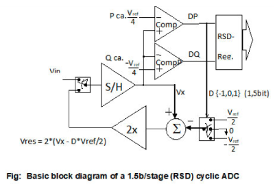 Reprint of the publication from 3rd IEE International Conference on Advanced A/D and D/A Conversion Techniques and their Applications (ADDA’02) Prague, Czech Republic, June 2002Abstract: Design of high-resolution Nyquist rate A/D converter necessitates the usage of advanced circuit techniques to compensate for arising analog errors. In switched capacitor ADC, besides the well know techniques such as bottom plate sampling, mismatch-independent and redundant (RSD: 1.5bit/stage) conversion for the elimination of charge injection, capacitor mismatch, comparator and offset sensitivity, respectively, the most utilised circuit techniques are those for OpAmp’s offset and finite gain errors cancellation. An alternative technique for compensation of the errors due to finite gain and offset of Opamp in SC circuits is proposed. This novel method features a charge addition and is compared to so far used approaches based on voltage addition. The concept and the results of a 5V CMOS implementation of cyclic RSD ADC with ratio-independent SC technique using this correction method are discussed.